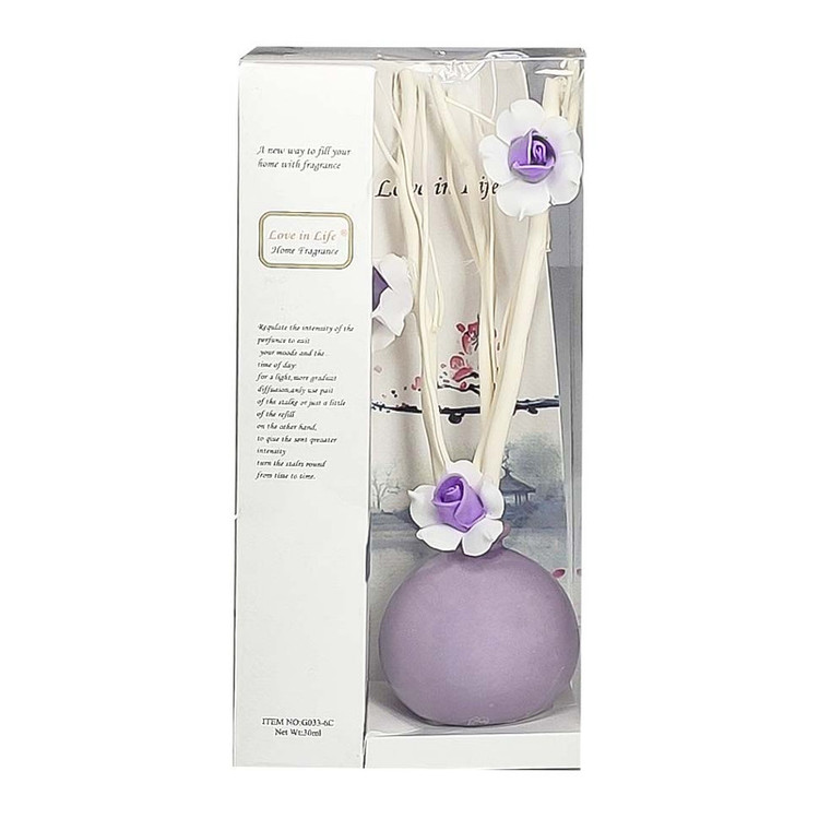 گلدان سرامیکی ---- گل مصنوعی ساخته شده از چوب و فوم---- یک مخزن مایع حاوی اسانس خوشبوکننده به حجم 30 میلی لیتر---- ابعاد : 6.4×6.4×21