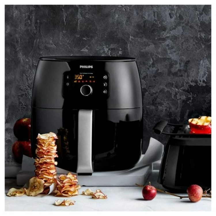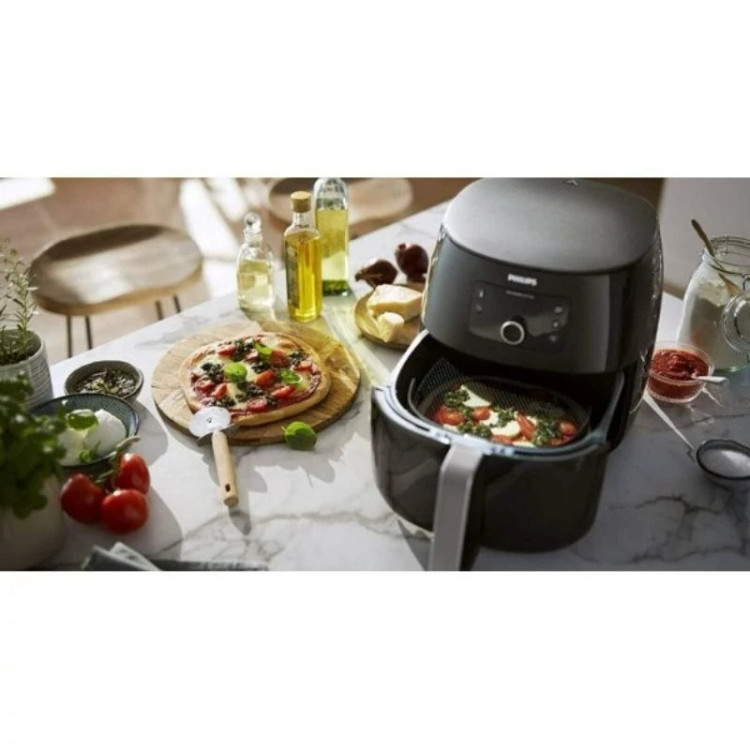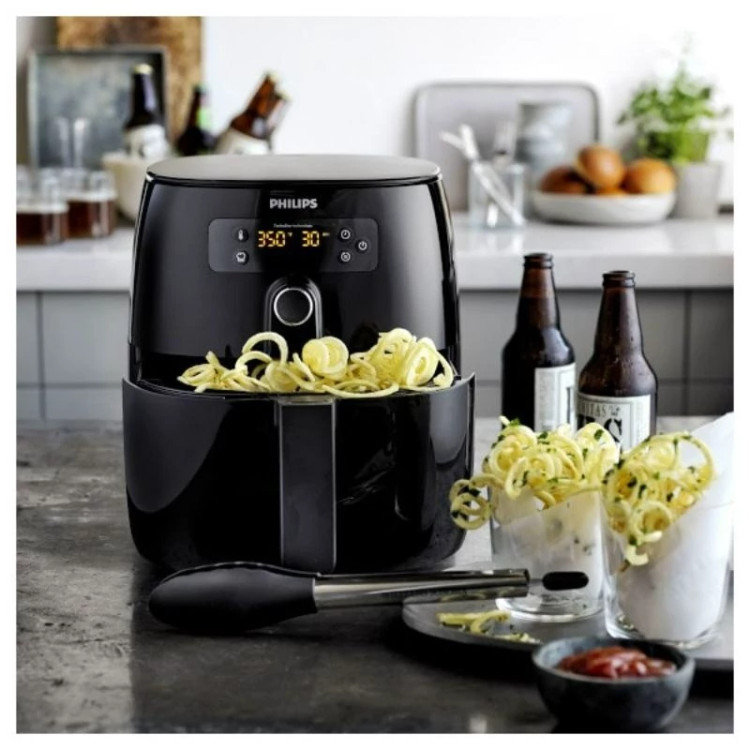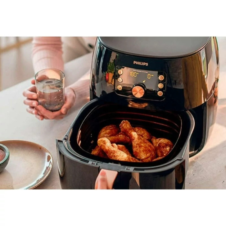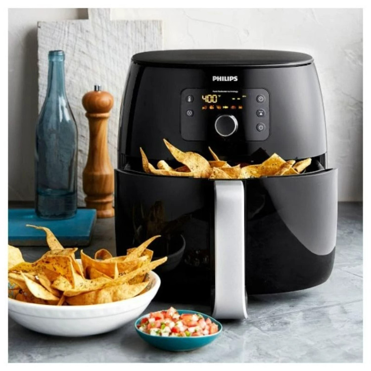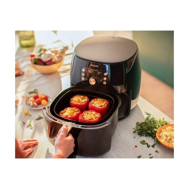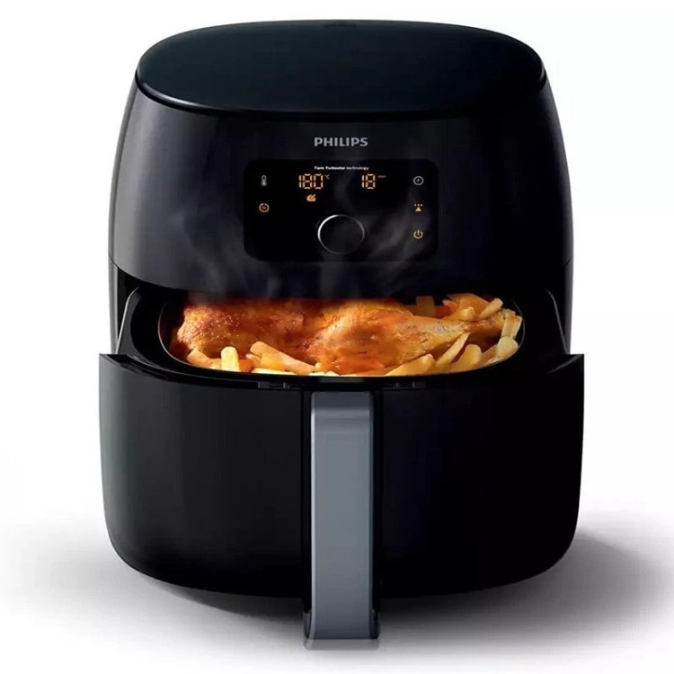 نقد و بررسی و خرید سرخ کن فیلیپس HD9650 سرخ کن فیلیپس مدل HD9650 یا هواپز فیلیپس با گنجایش مواد غذایی دو برابر بیشتر از سایر سرخ کنها، غذاهای مورد علاقه شما را با تولید هوای گرم، بدون روغن یا مقدار کمی از آن سرخ میکند و میپزد. شرکت فیلیپس ادعا میکند که سرخ کن بدون روغن فیلیپس مدل HD9650 سریعترین سرخ کن در پخت غذا در جهان است و این مدل ساخت کشور ترکیه میباشد. این سرخ کن با توان 1750 تا 2225 وات و با استفاده از امکاناتی همچون تفکیک پذیری قطعات، تکنولوژی سیستم قطع خودکار، صفحه لمسی، پیچ تنظیم حرارت و مدت پخت مواد غذایی و ... یکی از موثرترین و بهترین محصولاتی است که برند فیلیپس در زمینه سرخ کنها آن را تولید کرده است. سرخ کن فیلیپس مدل HD9650 ویژگی های سرخ کن فیلیپس مدل HD9650 Philips HD9650 مجهز به سیستمهای بسیار حرفهای برای سرخ کردن، گریل کردن و پخت بهتر مواد غذایی با حفظ ارزش آنها است. ظرف اصلی این سرخ کن بدون روغن فیلیپس فضای کافی برای پخت دو مرغ یا دو بسته سیب زمینی خلالی را دارد با قابلیت گرم شدن سریع میتوانید هر روز، برای پخت وعدههای غذایی مختلف برای تمام اعضای خانواده از آن استفاده کنید و در زمان خود صرفه جویی کنید. تمیز کردن این سرخ کن بسیار راحت و سریع انجام میشود، چرا؟ چون علاوه بر سبد که مواد غذایی در آن قرار میگیرد، ظرف دیگری برای آن تعبیه شده تا روغن اضافی مواد غذایی به داخل آن ریخته شود که که قابلیت جداسازی را دارند و به راحتی میتوانید در ماشین ظرف شویی گذاشته و آنها را بشویید. همچنین با نصب برنامه Airfryer بر روی موبایل خود میتوانید از صدها دستور پخت غذا توسط سرخ کن فیلیپس اطلاع یابید. تکنولوژی قطع خودکار و داشتن پایه های ضد لغزش Philips HD9650 سرخ کن بدون روغن HD9650 مجهز به سیستم خاموش کن خودکار میباشد. یکی از مهمترین مزایایی که HD9650 را از دیگر سرخ کن های موجود در بازار متمایز میکند این تکنولوژی است. به این صورت که پس از اتمام زمان پخت دستگاه توسط پیغام صوتی شما را از اتمام مراحل پخت مطلع میکند در واقع با توجه به زمانی که انتخاب کردهاید برای پخت مواد غذایی پس از اتمام دستگاه به صورت خودکار خاموش خواهد شد. از دیگر ویژگیهایی که در Philips HD9650 Airfryer قرار گرفته است، میتوان به وجود پایههای ضد لغزش اشاره کرد که این پایهها فرایند عملکرد دستگاه و سرخ کردن مواد غذایی را بسیار سریعتر و ایمنتر از حالت معمول انجام میدهد. تکنولوژی Twin TurboStar در سرخ کن فیلیپس مدل HD9650 کمپانی فیلیپس در محصول جدید خود ، HD9650 از تکنولوژی Twin TurboStar استفاده کره تا به شما در پخت بهتر محصول کمک کند اما به چه صورت؟ دو ظرف در فضای داخلی سرخ کن قرار گرفته یکی از آنها سبد مواد غذایی است و دیگری ظرفی از جنس تفلون با طراحی منحصر به فرد که سبد را در خود جای میدهد. با طراحی ویژه این ظرف هوای گرم به خوبی در تمام فضای داخلی سرخ کن به جریان در میآید و مواد غذایی را بصورت یکنواخت میپزد، علاوه بر آن تمام روغن اضافی دورن آن ظرف جمع آوری میشود. بدنه ای از جنس عایق ضد حرارت Philips HD9650 طراحی زیبای بدنه، دسته با طراحی ارگونومیک ساخته شده از مواد عایق حرارت، زیبایی این محصول فوق العاده را تکمیل میکند