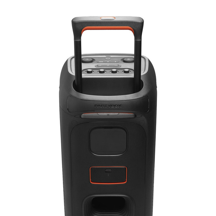 اسپیکر JBL PartyBox Stage 320 متناسب با نیازهای مهمانیهای مدرن و جابجایی آسان طراحی شده است. این محصول با اندازهای مناسب و دسته تلسکوپی و چرخهای محکم خود، حمل و نقل راحتی را فراهم میکند.