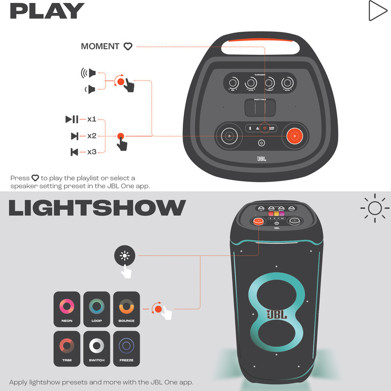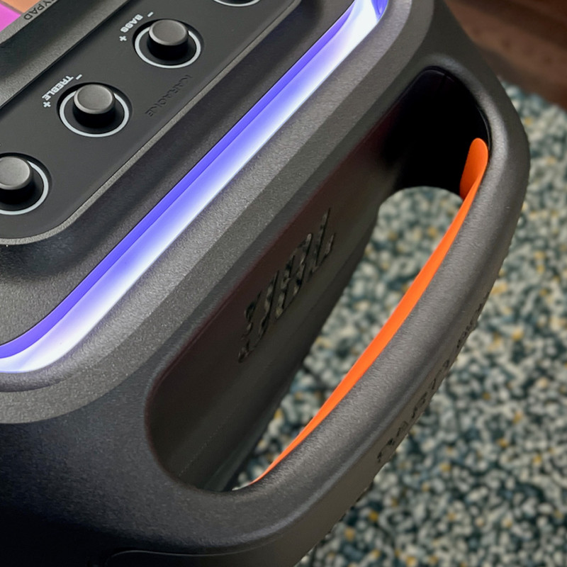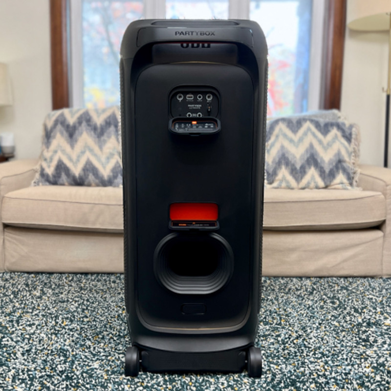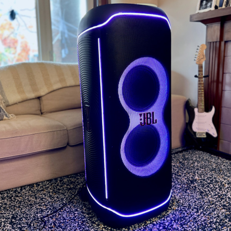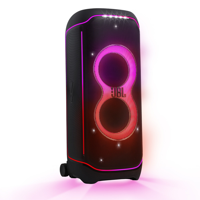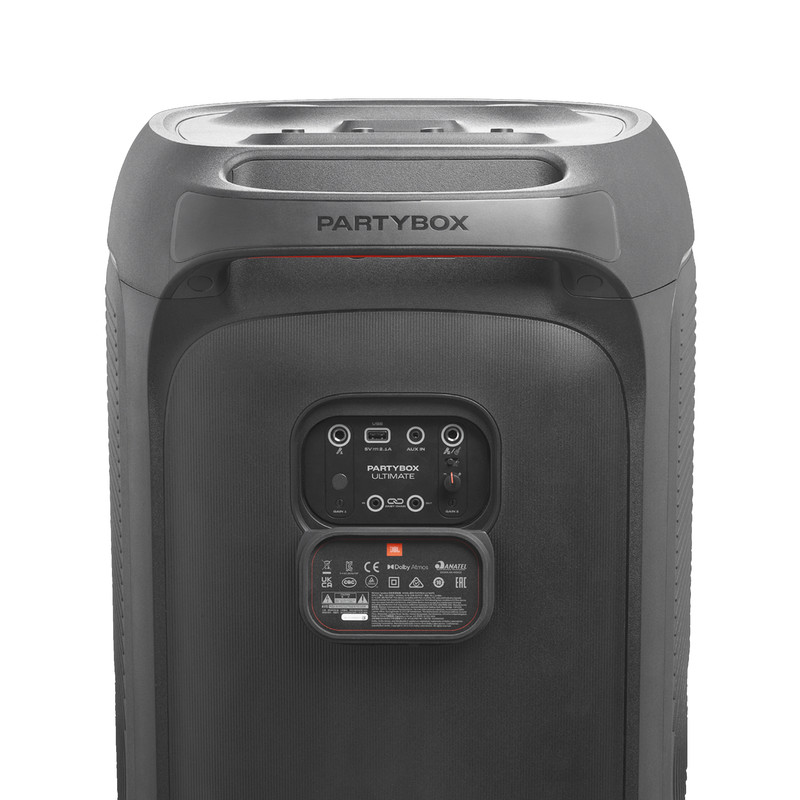 اسپیکر پرتابل و بلوتوثی Ultimate نسل جدید اسپیکرهای سری PartyBox از برند محبوب جی بی ال است. این اسپیکر قابل حمل با درایورهای بهبود یافته و سخت افزار بروز شده، تجربهی صوتی متفاوتی را به شما ارائه میدهد. همچنین طراحی ظاهری زیبا و چشمگیر آن همراه با بدنهی ضدآب و مقاوم ، شما را با سطح جدیدی از سیستمهای صوتی پرتابل آشنا میکند. دلیل نامگذاری این اسپیکر ظرفیت بالای صدای تولیدی و آخرین و به روزترین تکنولوژیهای نوری و سیستماتیک این محصول است همچنین برای اتصال این اسپیکر به دستگاههای پخش مانند گوشی موبایل یا پلیرها ، از تکنولوژی بلوتوث استفاده شده است تا بتوانید به راحتی به این اسپیکر متصل شده و به صورت بی سیم موسیقی مورد علاقه خود را بشنوید. جی بی ال در سری جدید اسپیکر Ultimate از بلوتوث نسخه 5.3 که جدید ترین نسخه در حال حاضر است استفاده کرده است و این اسپیکر حرفهای دارای صدای قدرتمند و شفافی است که توسط درایور های جدید و بهبود یافته تولید و پخش میشود. 2 عدد ساب ووفر 242میلی متری(9 اینچی) به همراه 2 عدد بلندگوی مید رنج 120میلی متری(4.5 اینچی) و 2 عدد بلندگوی تیوتر 74 میلی متری(2.75اینچی)در کنار هم تجربهی صوتی جدید و بی نظیری را برای شما فراهم میکنند. در مجموع این محصول قادر است تا صدایی به قدرت 1100 وات RMS را تولید کرده و به گوش شما برساند. بازه فرکانسی قابل پخش در این سیستم صوتی مابین 30 هرتز تا 20000 هرتز است که برای اسپیکری با این ابعاد فوق العاده است. تنظیمات افکتهای صوتی و نوری نیز از جدید ترین نوع بوده و رقص نور و نور پردازی با جزعیات دقیق آهنگ پخش شده هماهنگ میگردد. ورودیهای میکروفن و گیتار هم دارای تنظیمات دقیقی است تا هر آنچه از صوت و تصویر برای برپایی میهمانیهای خود نیاز دارید در کنار هم جمع باشد.با وجود وزن زیاد این محصول،چرخ های تقویت شده آن نسبت به مدلهای قبلی کارایی بهتری در جا به جایی آن در اختیار کاربر قرار می دهند.اتصال تمامی محصولات خانواده PartyBox به هم در این محصول دیده میشود و میتواند تمام کننده ی نیاز صوتی شما باشد.اسپیکر Ultimate برترین محصولی است که واژهی JBL Pro Sound را به تصویر میکشد.