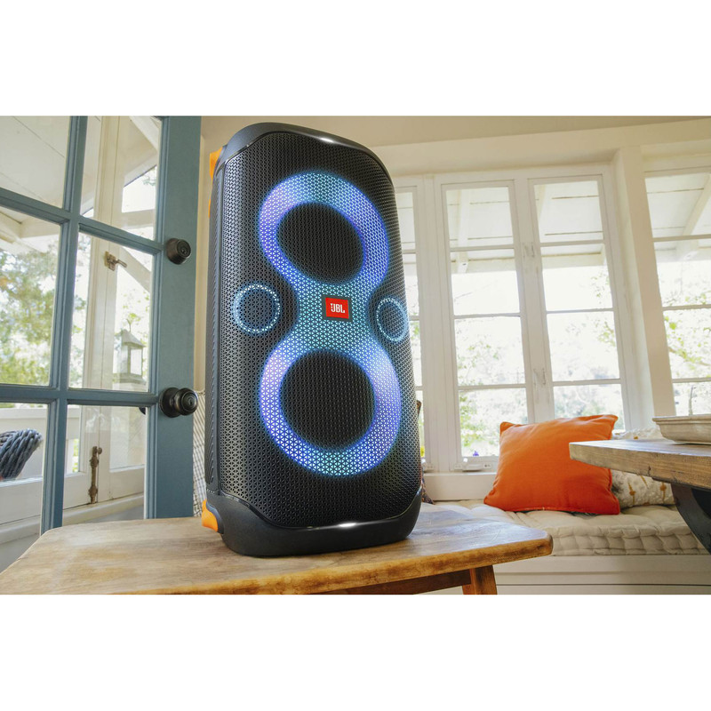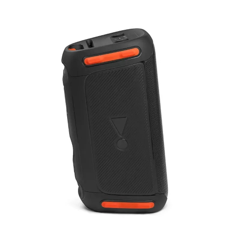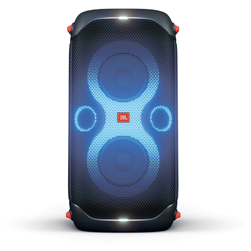 با اسپیکر قدرتمند و قابل حمل JBL PartyBox 110 میتوانید مهمانی را با صدای قدرتمند و نمایش نور پویا شروع کنید. این دستگاه با نورپردازی منحصر به فرد LED هماهنگ شده، با صدای قدرتمند و باس عمیق، برای هر مهمانی، محتوای جدیدی به ارمغان میآورد. اسپیکر JBL PartyBox 110 دارای یک طراحی جمع و جور است که میتوان آن را با یک دست حمل کرد. همراه با صدای با کیفیت JBL Original Pro با ظرفیت قدرت 160 وات با پاسخ فرکانس 45 هرتز تا 20 کیلوهرتز و حساسیت 6 دسی بل همراه است که مجموعه ای از فن آوریهای پیشرفته مانند بلوتوث 5.1 را در خود دارد. اسپیکرهای JBL PartyBox 110 یک اسپیکر بلوتوثی با چراغهای LED زیبا و سیستم ارتقا یافته مدل قبلی این برند است که به فضای بیشتر، مانند یک اثر هنری زیباتر، همراه با دو توییتر و دو ووفر مجهز شده اند. این دستگاه مجموعاً دارای 4 چراغ ، به همراه 2 چراغ چشمک زن در بالا و پایین برای دنبال کردن موسیقی است. به راستی JBL PartyBox 110 به شما تجربه سمعی و بصری بی نظیر و همه جانبه ای میبخشد که هر مهمانی را به یک اثر هنری تبدیل میکند. هر نوع موسیقی با نمایش نور پویا بهتر است. نمایش نور پویا که با ضربان همگام سازی میشود، رنگهای همگام با ضربات را به حرکت در میآورد، در حالی که استروبها و الگوهای قابل تنظیم چشمان شما را خیره میکند. این یک تجربه شنیداری و بصری منحصر به فرد است که هر مهمانی را به یک اثر هنری تبدیل مینماید. همچنین میتوانید مهمانی را تمام روز تأمین کنید. با 12 ساعت دوام باتری قابل شارژ داخلی، پخش ادامه خواهد یافت. ضمن آنکه با درجه مقاومت IPX4 میتوانید آن را در کنار استخر با خود همراه کنید. JBL PartyBox 110 به دلیل دارا بودن گواهینامه IPX4 مقاوم در برابر آب است، بنابراین هرگز نگران خیس شدن و آسیب دیدن آن نخواهید بود. از سویی دیگر، با ورودیهای میکروفون و گیتار، میتوانید استعدادهای خود را هنگام آواز خواندن و بازی نشان دهید.