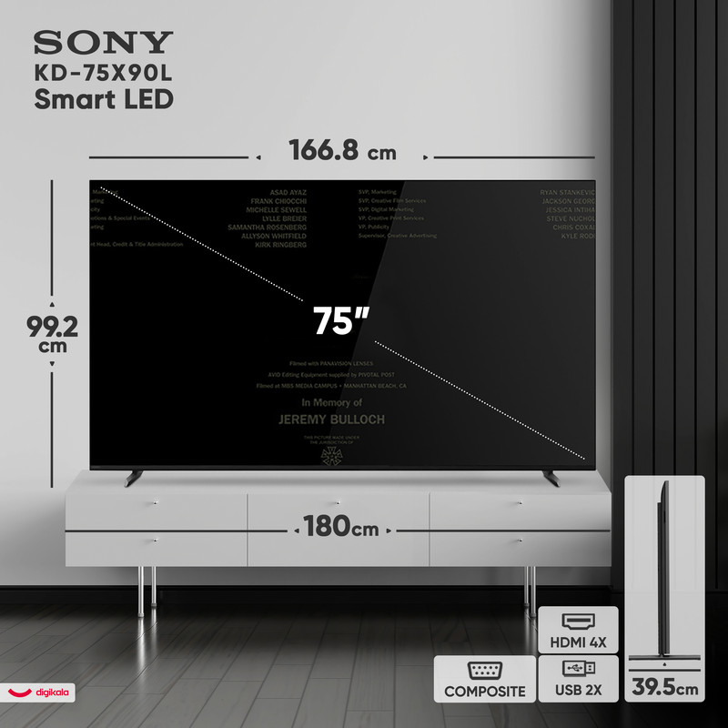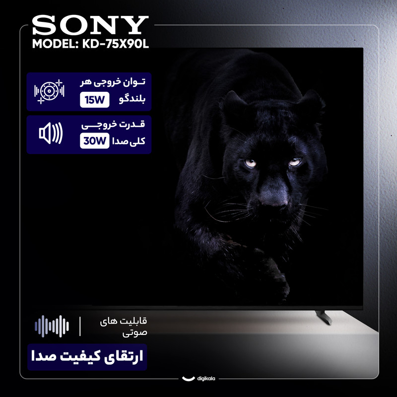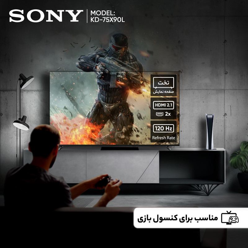 اگر بهدنبال یک تلویزیون بزرگ، باکیفیت و هوشمند هستید که تجربهای متفاوت و خاص از تماشای فیلم، مسابقات ورزشی و بازیهای ویدیویی برای شما به همراه داشته باشد، تلویزیون ۷۵ اینچ سونی مدل KD-75X90L میتواند یکی از بهترین انتخابهای شما باشد. این تلویزیون با صفحه نمایش LED بزرگ و امکانات پیشرفته، به راحتی میتواند فضای منزل شما را به یک سالن سینمای شخصی تبدیل کند. صفحه نمایش ۷۵ اینچی این تلویزیون با کیفیت تصویر4K و رزولوشن ۲۱۶۰ × ۳۸۴۰ پیکسل، تصویری بسیار شفاف، زنده و واقعی ارائه میدهد. تکنولوژی پنل IPS باعث میشود زاویه دید گستردهتری داشته باشید و کیفیت تصویر حتی از زوایای کناری هم حفظ شود. پشتیبانی از فرمتهای HDR نظیر HLG ،HDR10 و Dolby Vision به این معناست که شما میتوانید کوچکترین جزئیات را چه در صحنههای تاریک و چه در تصاویر بسیار روشن با عمق رنگ و کنتراست بالا ببینید. نرخ بهروزرسانی ۱۲۰ هرتزی تلویزیون سونی KD-75X90L حرکات سریع را کاملاً روان و بدون تاری نمایش میدهد. این ویژگی مخصوصاً برای تماشای مسابقات ورزشی، فیلمهای اکشن و اجرای بازیهای حرفهای بسیار ارزشمند است. در کنار تصویر چشمنواز، سونی برای صدای این تلویزیون هم امکانات کمنظیری در نظر گرفته است. سیستم صوتی با توان خروجی کلی ۳۰ وات و طراحی بلندگوهای توییتر، صدایی واضح و عمیق تولید میکند که با پشتیبانی از فناوریهای Dolby Atmos،DTS و Dolby Audio، دید سهبعدی و فراگیر را برای بیننده فراهم میکند. وجود حالتهای صدای مختلف از جمله Cinema ،Dialog ،Sports و Standard به شما این امکان را میدهد که صدا را مطابق با محتوای در حال پخش تنظیم کنید و لذت بیشتری ببرید. تلویزیون KD-75X90L به سیستم عامل اندروید ۱۰ مجهز شده است که با حافظه داخلی ۳۲ گیگابایت فضای مناسبی برای نصب اپلیکیشنها و بازیها در اختیار شما میگذارد. پشتیبانی از قابلیتهایی نظیر Screen Mirroring، Apple AirPlay و Apple HomeKit به شما این امکان را میدهد که محتوای موبایل یا تبلت خود را روی صفحه نمایش تلویزیون ببینید. همچنین وجود دستیار صوتی و قابلیت جستجوی صوتی، کار با تلویزیون را سادهتر میکند. با استفاده از بلوتوث، Wi-Fi، DLNA و Wi-Fi Direct میتوانید به سرعت به سایر دستگاهها متصل شوید و محتواهای دلخواه خود را به اشتراک بگذارید.