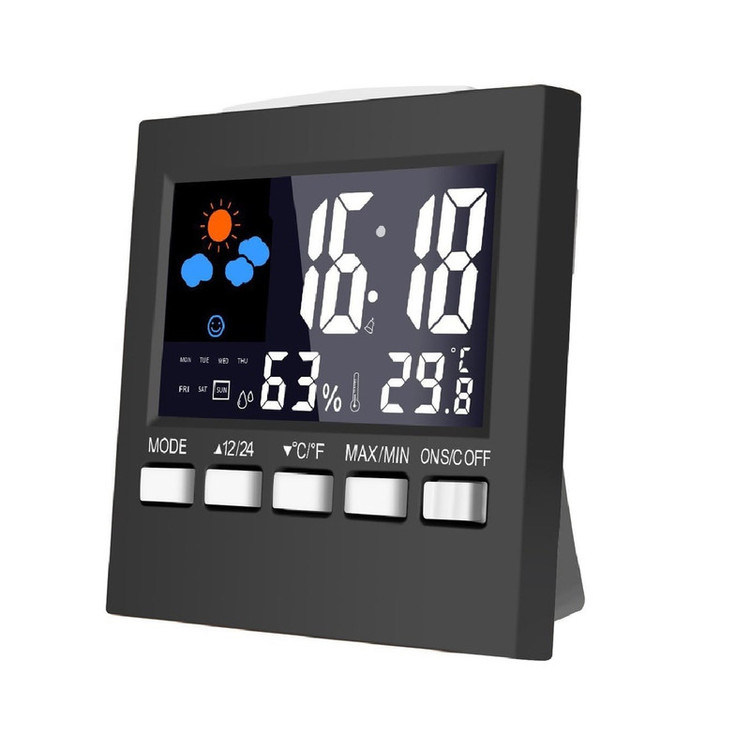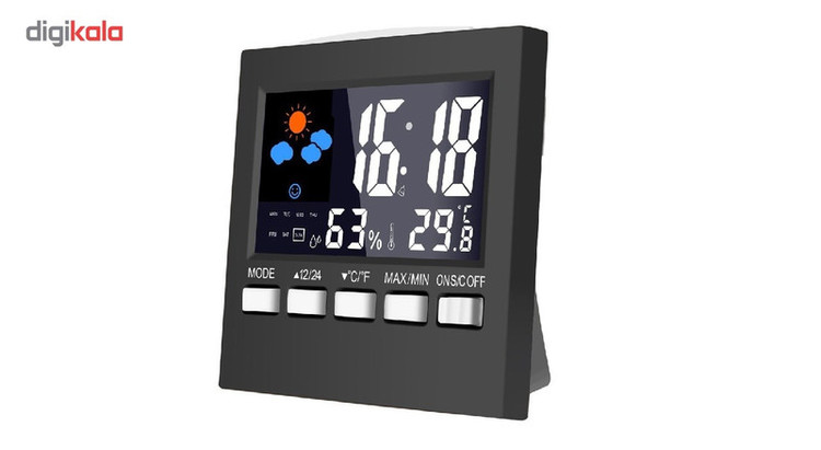 - نور پس زمینه دارد - پیش بینی وضع آب و هوا بصورت تقریبی -فعال شدن نور پس زمینه با صدا و یا ضربه کوچک روی میز