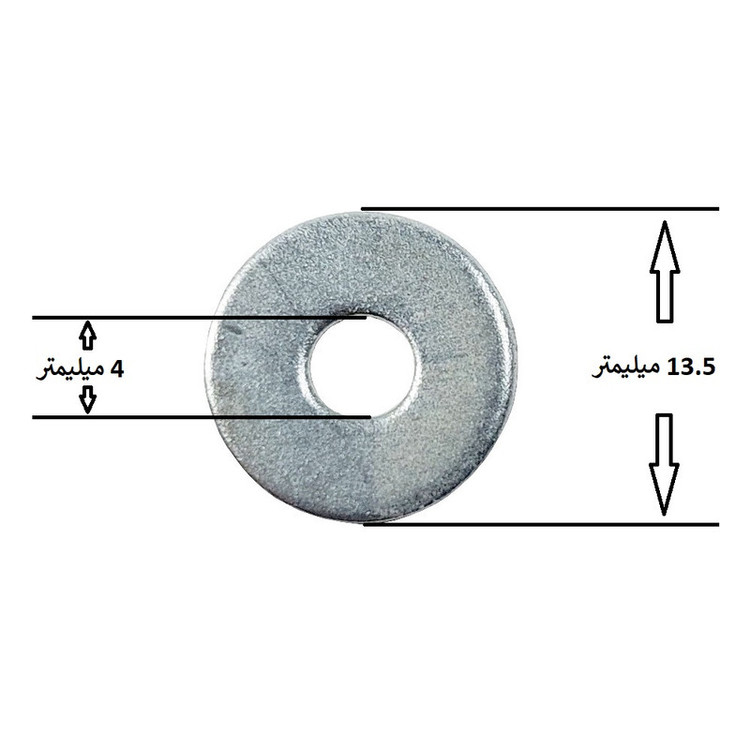 دور واشر یا قطر بیرونی : 13.5 میلیمتر ------ قطر داخلی : 4 میلیمتر -------- ضخامت : 0.7 میلیمتر