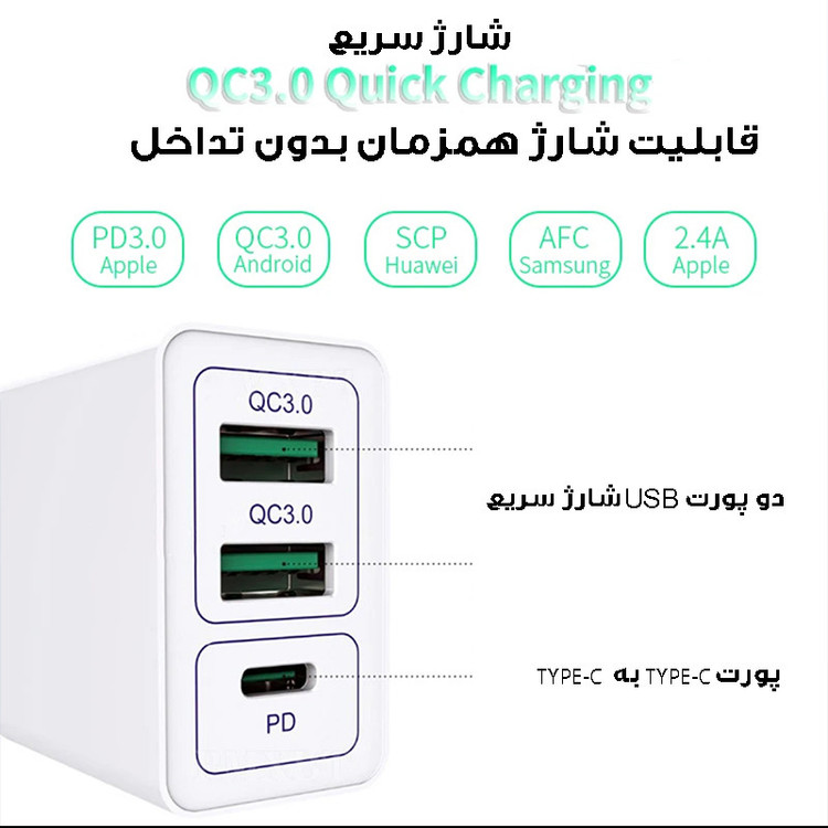 امکان شارژ کردن سریعتر موبایل (با شدتجریان 2.0 آمپر و بالاتر) , فناوری Quick Charge 3.0 , شارژ ایمن (MultiProtect)