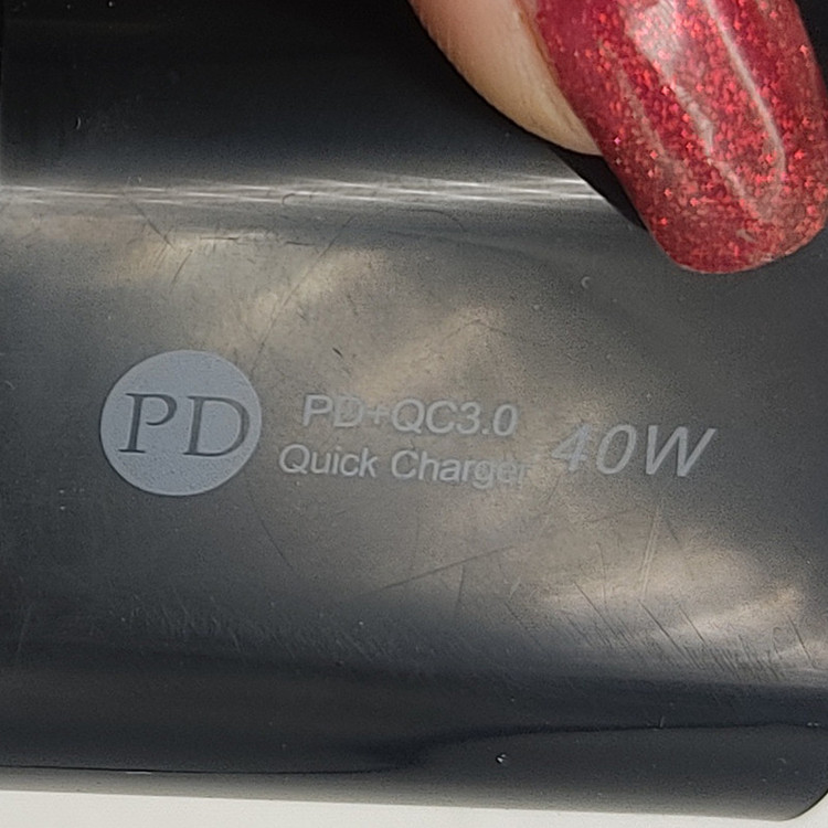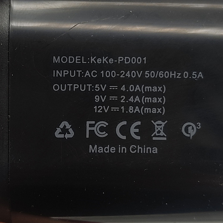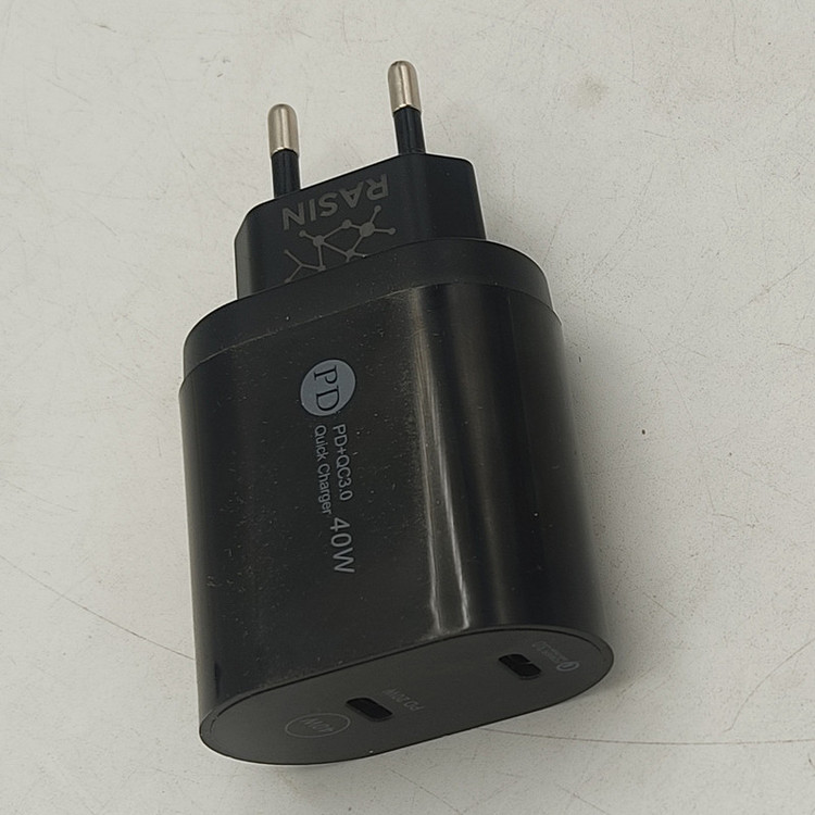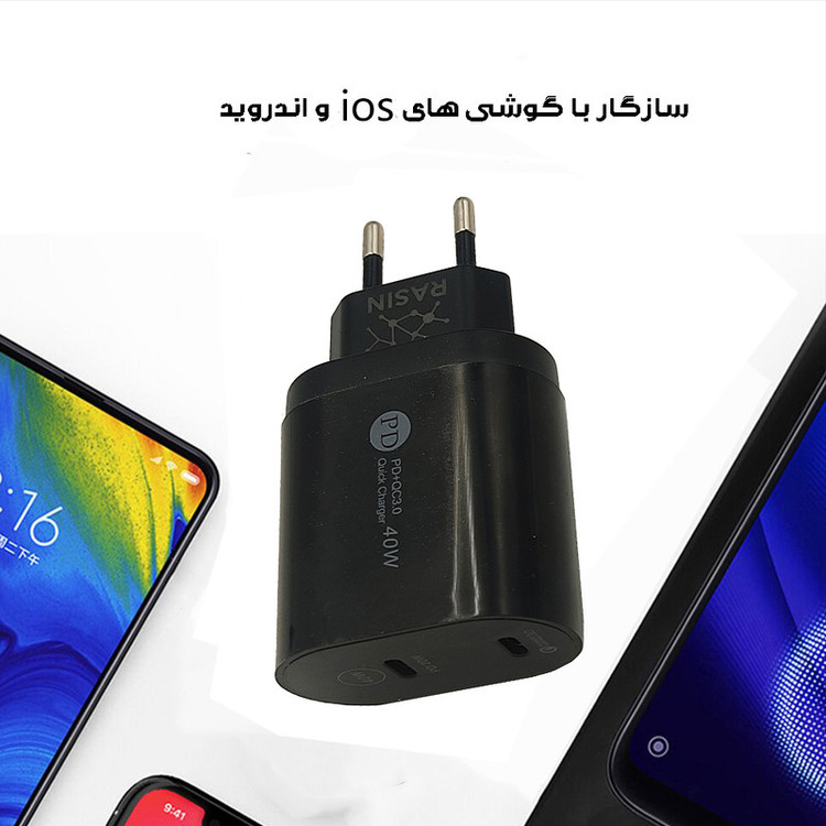 دو درگاه شارژ سریع TYPE-C به TYPE-C ، شدت جریان خروجی : 5V =4,0A و 9V=2.4A و 12V=1.8A شدت جریان داخلی AC100-240V 50/60HZ و 0.5A