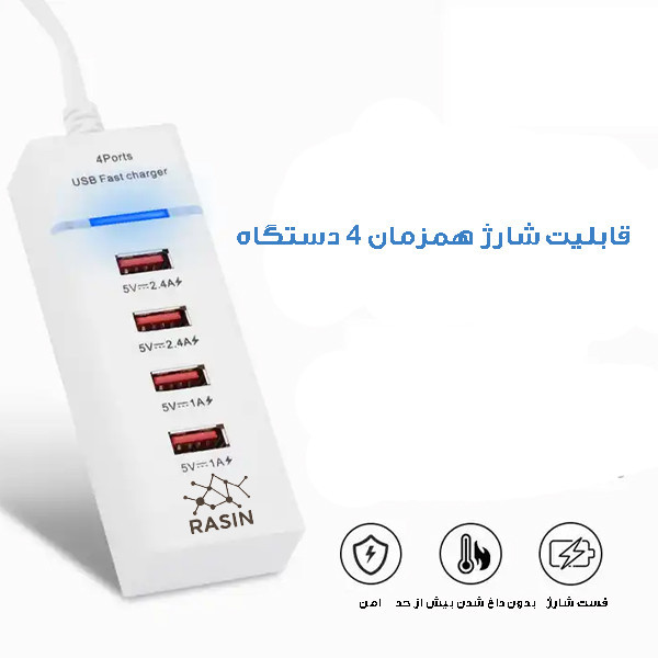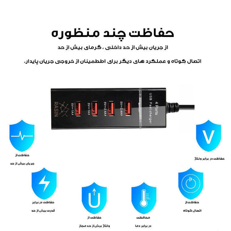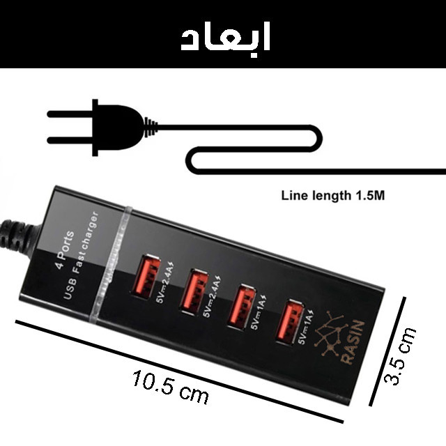 توضیحات: INPUT:100-240V / 60/50HZ OUTPUT:2x5V=2.4A / 2x5V=1A