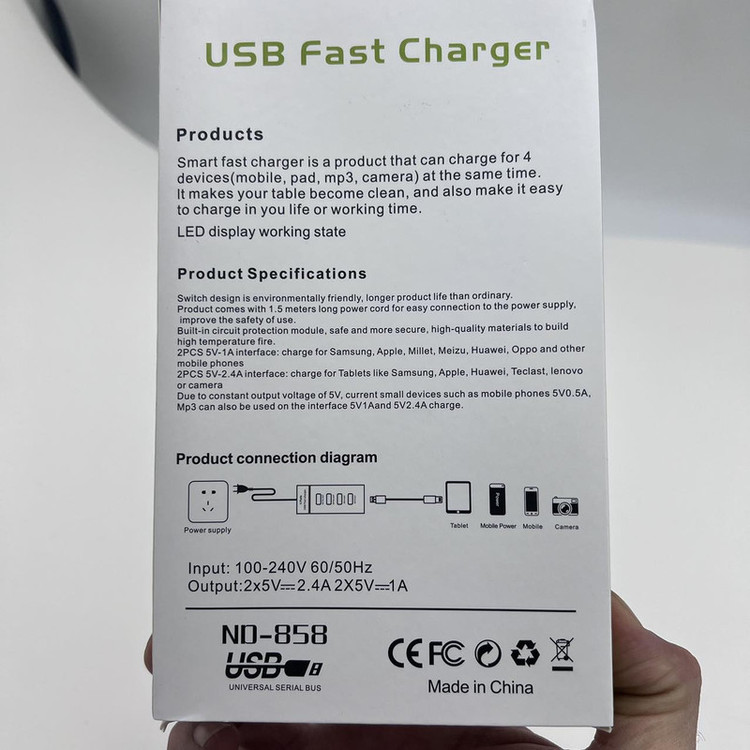 INPUT:100-240V / 60/50HZ OUTPUT:2x5V=2.4A / 2x5V=1A