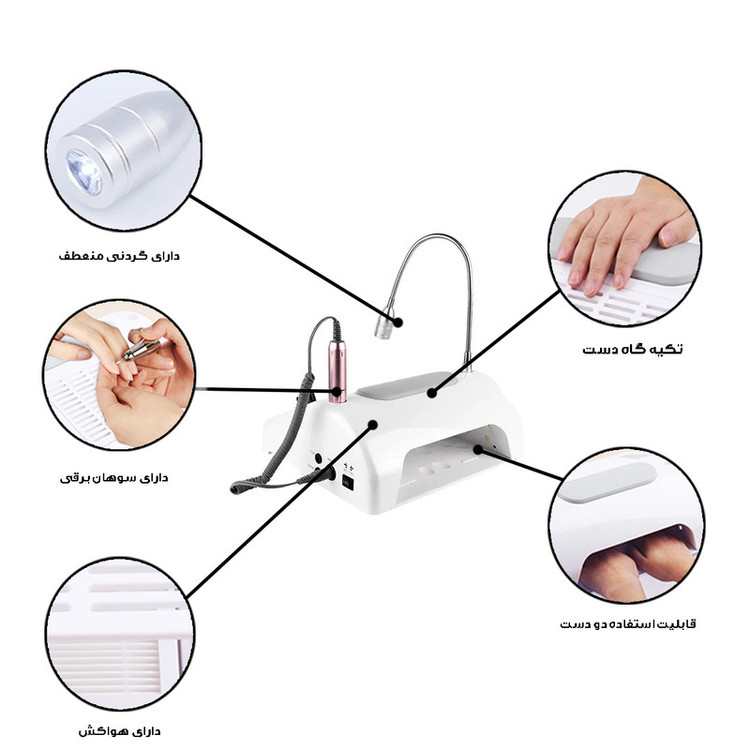 قابلیت تنظیم تایم زمانی به همراه سوهان برقی ، مناسب برای تراشیدن و خشک کردن انواع ژل ها و لاک ژل ها