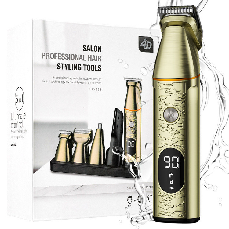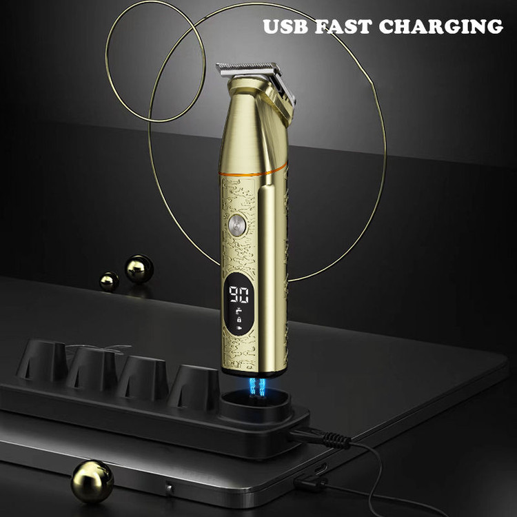 دستگاه ماشین اصلاح با بدنه فلزی 6 عدد شانه کابل شارژ 5 عدد سری مخصوص کار های مختلف برس تمیز کننده شانه سر و استند شارژ