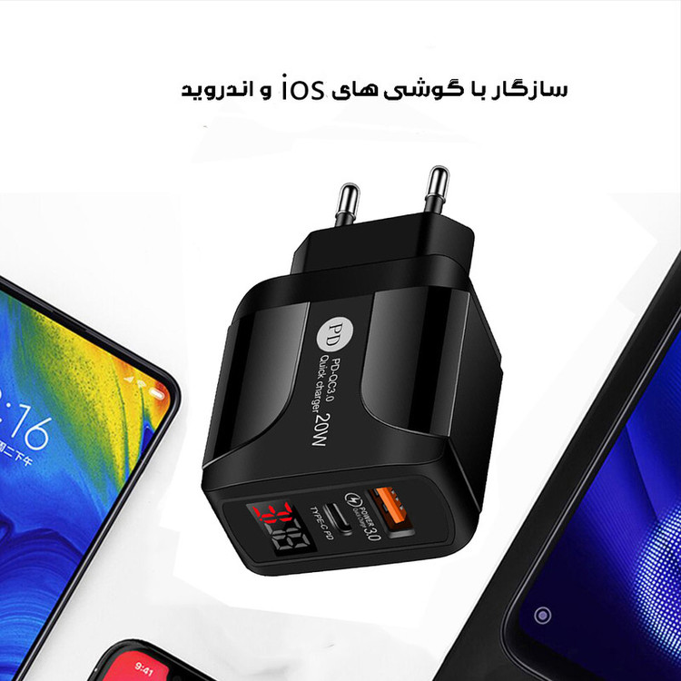 قابلیت Power IQو جریان ورودی V 240-100و 50/60HZ و 0.5A و جریان خروجی 5V=4.0A و 9V=2.22A و 12V=1.7A مناسب برای شارژ انواع گوشی ها و وسایل شارژی