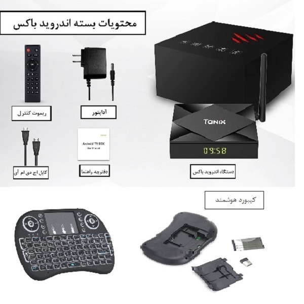 اندروید باکس Tanix مدل TX6S -4/64- یک اندروید باکس با ظاهری بسیار زیبا، وزن کم و ابعاد کوچک است. این محصول دارای سیستم عامل اندروید 10.0، پردازشگر مرکزی Allwinner H616، پردازنده گرافیکی - Quad Core ARM Cortex A53 حافظه ذخیره سازی 64 گیگابایت، پرسرعت، نسل جدید، حافظه سیستمی 4 گیگابایتی DDR3، پورت شبکه LAN، شبکه وایرلس Dual band (2.4GHz/5GHz) IEEE 802.11a/b/g/n/ac برای اتصال پایدار به اینترنت، سه درگاه USB 2.0 برای اتصال کیبورد، موس، فلش مموری، هارد اکسترنال كمتر از يك ترابايت با برند معتبر، دسته ی بازی و همچنین پشتیبانی از محتوای تصویری شگفت انگیز (4K@24fps, H.265(HEVC است. در این اندروید باکس به سادگی و با استفاده از قابلیت dlna و AirPlay، با اتصال گوشی و یا تبلت اندرویدی و یا اپل به همان شبکه وایرلسی که این اندروید باکس به آن متصل است، میتوان عکسها و فیلمهای داخل موبایل و یا تبلت را بر روی صفحههای نمایش بزرگ تلویزیون به صورت وایرلس مشاهده کرد. از دیگر ویژگیهای این محصول، پشتیبانی از فرمت HDR (گستره دینامیکی بالا) در نمایش تصاویر ویدئویی هست. این فرمت، تصاویری واقعی تر با عمق رنگ بیشتر ایجاد میکند. براي نصب برنامههايي مانند فيليمو، نماوا، تلوبيون، آپارات، ديجيكالا و اكثر بازيهاي مخصوص اندرويد (به جز بعضي از بازيهاي لمسي)، ابتدا به گوگل پلي (Google Play) برويد و با جستجو كردن برنامه وبازي مورد نظر آن را نصب كنيد. دقت كنيد كه تمام برنامهها و بازيها را حتما از گوگل پلي نصب كنيد. در غير اينصورت ممكن است باعث ايرادات فني و نرم افزاري دستگاه شما شود.