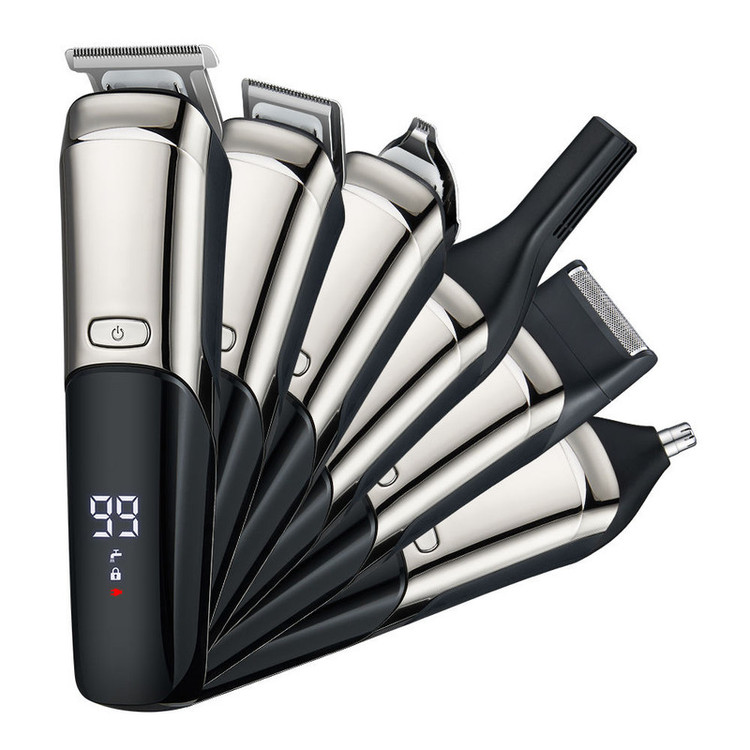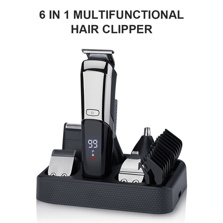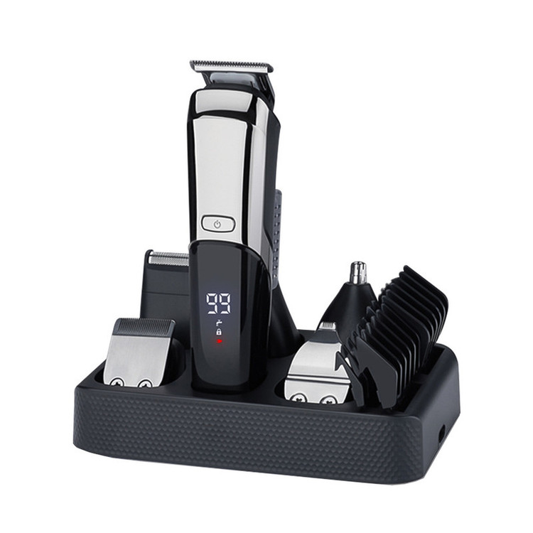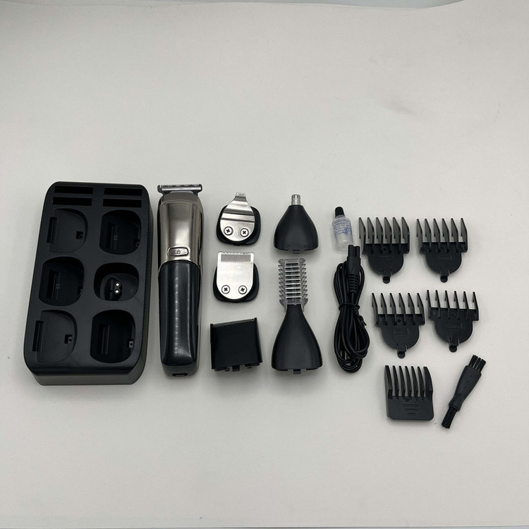 دستگاه ماشین اصلاح 6 عدد شانه کابل شارژ 6 عدد سری مخصوص کار های مختلف برس تمیز کننده شانه سر و استند شارژ
