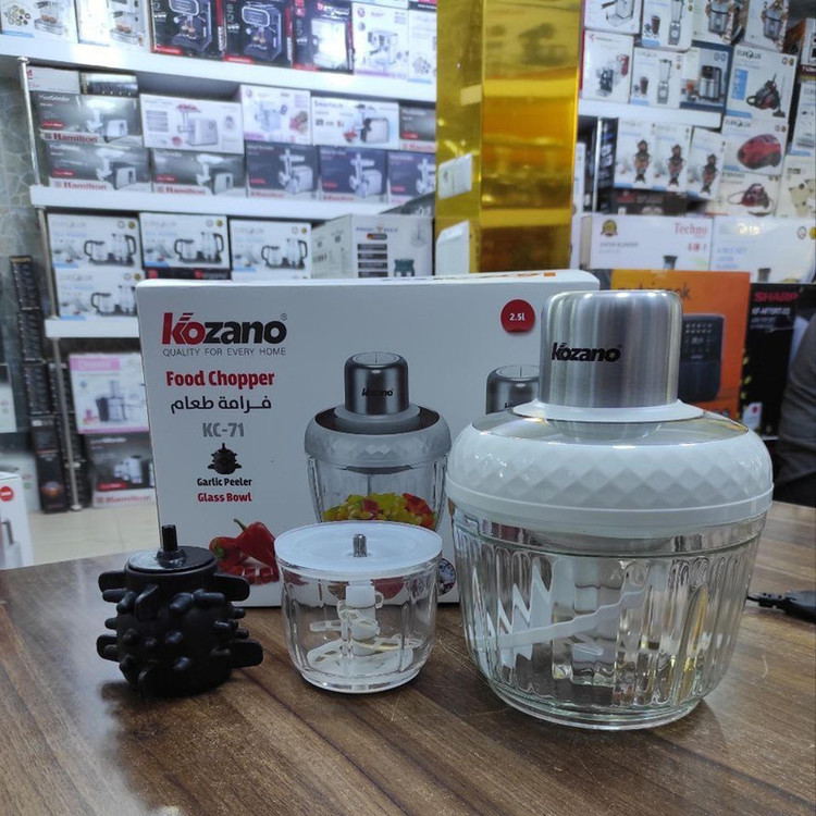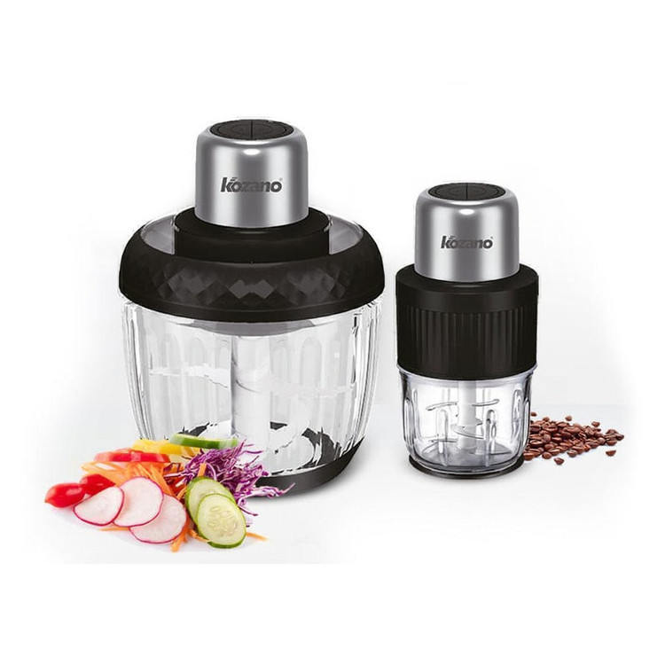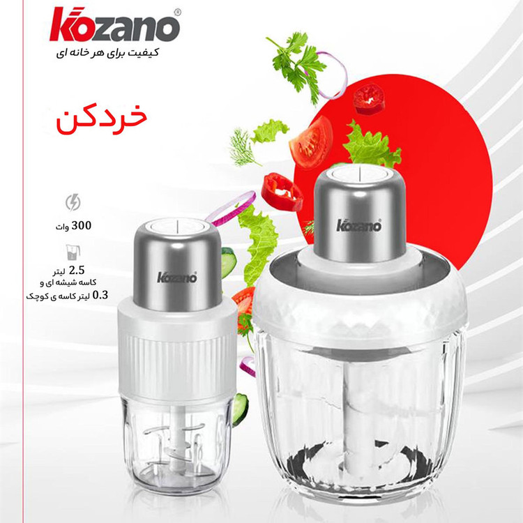دارای دو ظرف خردکن، لیسک پلاستیکی، تیغه مجزا برای هر ظرف خردکن، قطعه چند منظوره پلاستیکی،