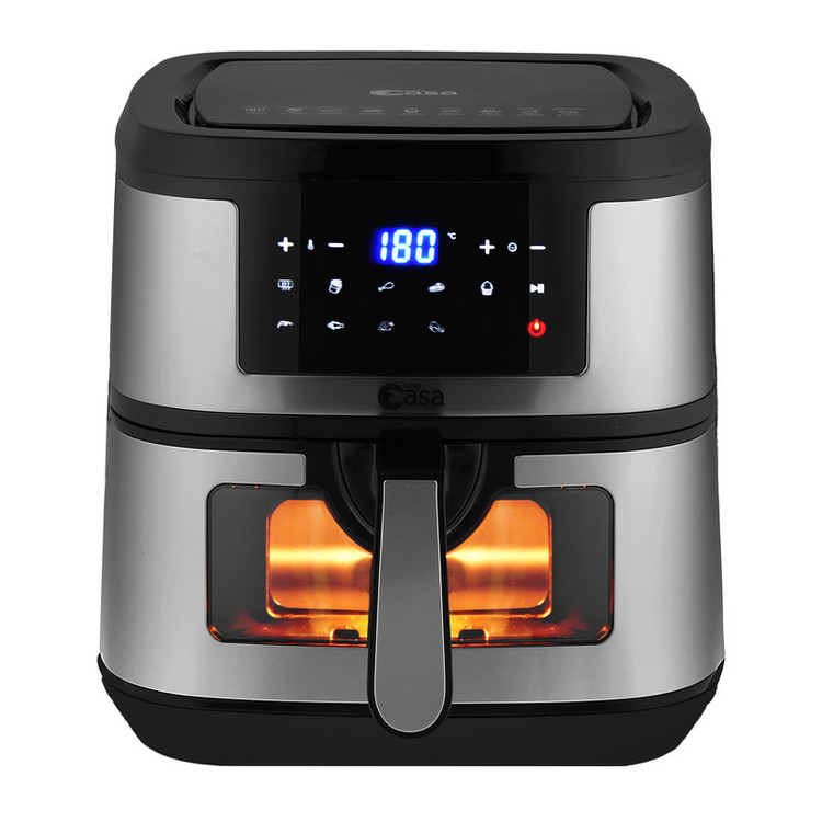 سوپر کاسا یکی از برندهای معتبر در زمینهی تولید لوازم خانگی و برقی است که چندین سال است در این حوزه فعالیت میکند. یکی از محصولات بینظیر این کمپانی، سرخ کن های بدون روغن است که در مدلهای مختلفی تولید شده است. سرخ کن های بدون روغن با تزریق هوای داغ و گردش آن در داخل محفظه، سبب آماده شدن و مغز پخت شدن غذاها میگردد. این سرخکن ها مصرف روغن را 80-90 درصد کاهش میدهند و سلامت بدن شما را برای عمری طولانی تضمین میکنند. سرخ کن بدون روغن دیجیتال AF-118 یکی از محصولات کمپانی سوپر کاسا است که سبب کاهش 80 درصدی مصرف روغن شده و غذاها را با میزان مصرف بسیار پایین یا بدون روغن سالم آماده میکند. سرخ کن دارای توان مصرفی 1800 وات است که باعث آماده شدن غذاهای دلخواه شما در زمانی کوتاه میشود. گنجایش مخزن این سرخ کن 8 لیتر است که به کمک آن میتوانید دوستان یا خانواده را به صرف یک وعده غذای لذیذ دعوت نمایید. پنل کنترلی این دستگاه به صورت لمسی طراحی شده است و با یک لمس غذاهای مورد علاقهی شما را آماده میکند. سرخ کن بدون روغن دیجیتال AF-118 دارای سیستم تایمر و تنظیم دما است که با تغییر آن میتوانید زمان و دمای غذای خود را تنظیم کنید. هواپز بدون روغن دیجیتال سوپر کاسا دارای طراحی بدنهی منحصر به فردی بوده که از جنس پلاستیک محکم و استیل ساخته شده و از دوام و ماندگاری بالایی برخوردار است.