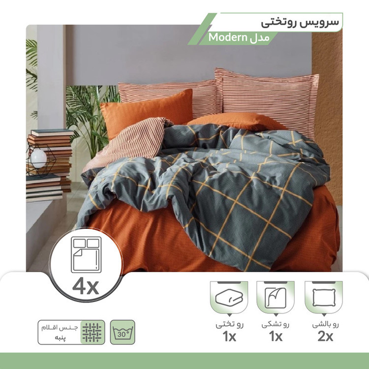 اجزای سرویس خواب: روکش لحاف , رو تشکی , رو بالشی