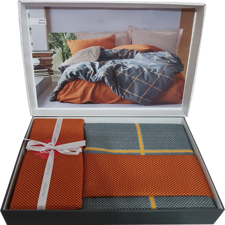 سرویس ملحفه کاتن باکس مدل Modern طرح Stark رنگ Tarcin شامل : 4 تکه ابعاد کاور لحاف : 200x220x.01 سانتی متر ابعاد کاور تشک : 240x260x0.1 سانتی متر تعداد رو بالشی : دو عدد ابعاد رو بالشی : 50x70x0.5 جنس کاور لحاف و تشک رو بالشی : پنبه