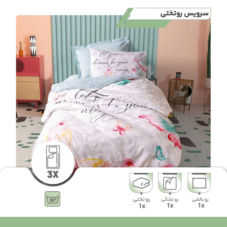 اجزای سرویس خواب: روکش لحاف , رو تشکی , رو بالشی