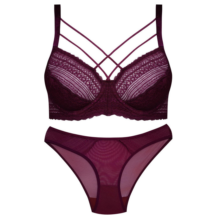 ست شورت و سوتین زنانه کارنا رز مدل فنردار هارنس ضربدری کد 4873-2034 رنگ زرشکی