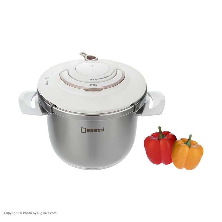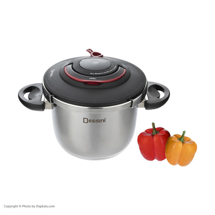 - جنس کفی: آلومینیوم - استیل 18/10 - دارای 2 حالت تنظیم پخت دلخواه - واشر سیلیکونی قابل تعویض - قابلیت شستشو با ماشین ظرفشویی - دسته عایق - قابیلت قرارگیری روی انواع شعله (گازی، برقی، سرامیکی و ...) - روکش نیکل کروم