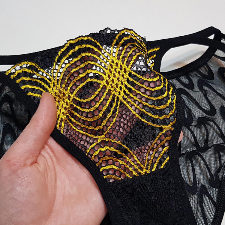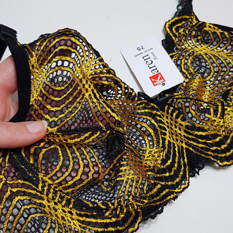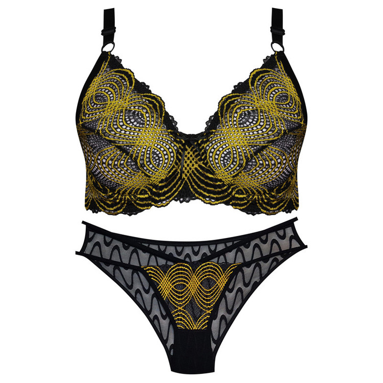 ست شورت و سوتین زنانه کارنا رز مدل فنردار گیپور هندسی کد 4874-2038-2 رنگ زرد