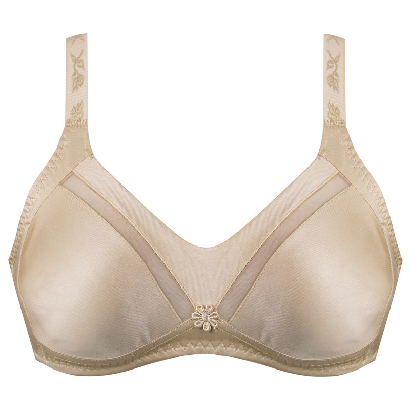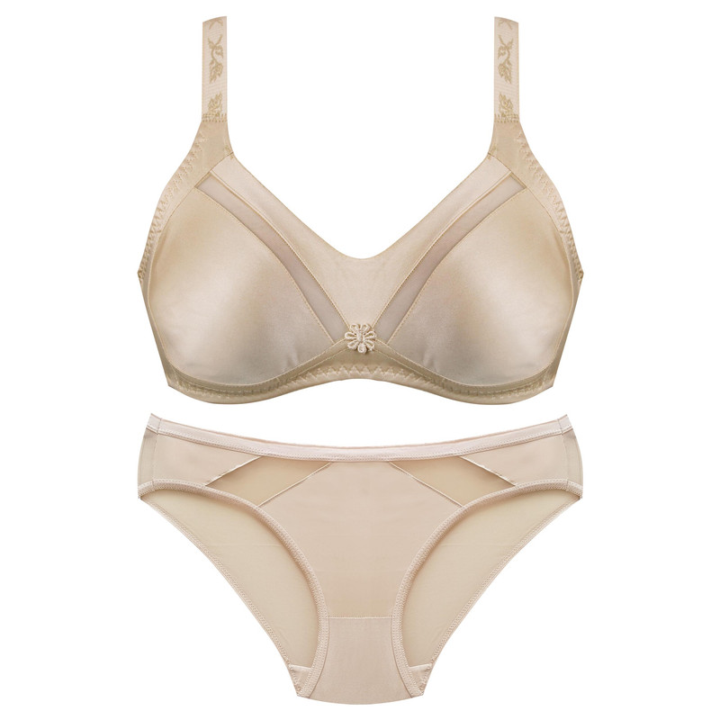 ست شورت و سوتین زنانه پانیذ مدل ساتن وسط توری بدون فنر کد 4648 رنگ کرم