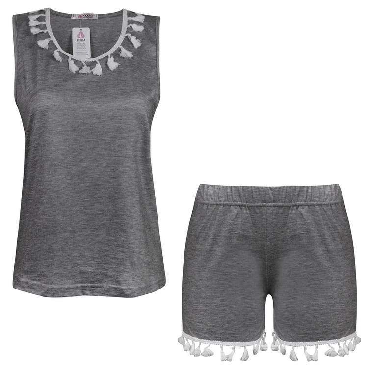 ست تاپ و شلوارک زنانه کوزا مدل 9181 رنگ خاکستری