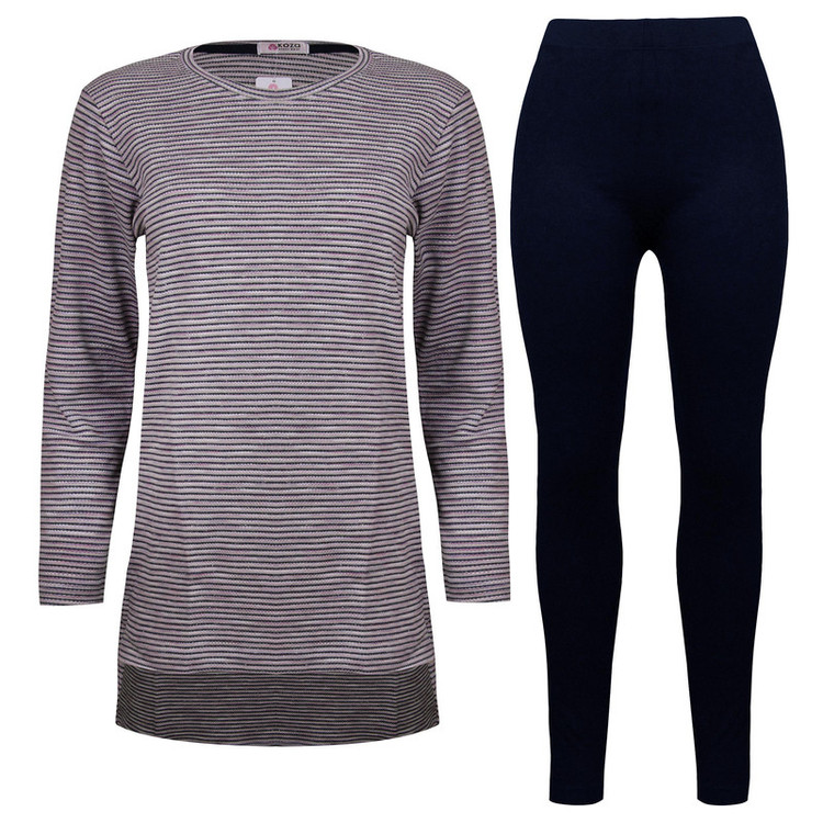 ست تی شرت آستین بلند و شلوار زنانه کوزا مدل 4601-007 رنگ صورتی